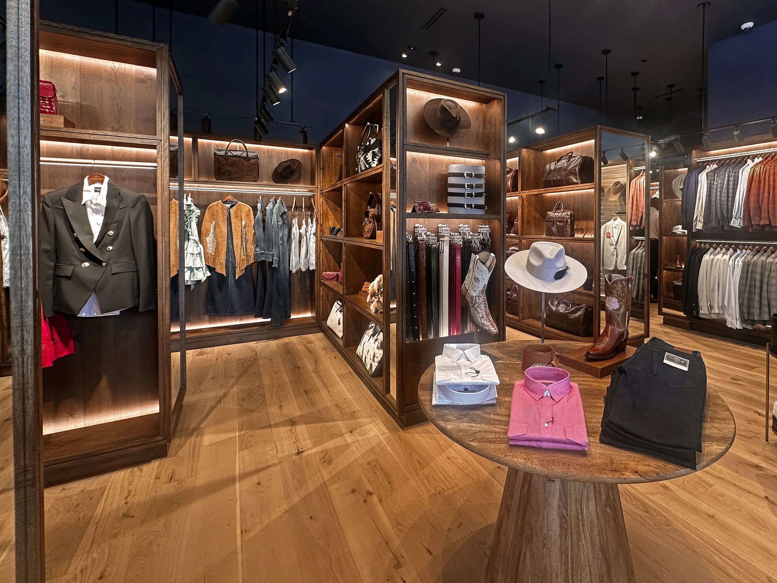 Macallan completed the 2,200 SF interior buildout of Lucchese Bootmaker’s newest retail location in Buckhead Village. The project began with a full demolition of the previous tenant’s finishes, partition walls, and wall treatments. The scope included construction of a new open-concept floorplan featuring custom millwork, upgraded flooring, modern lighting, and branded architectural elements. The result is a refined, inviting retail environment that reflects Lucchese’s heritage of craftsmanship and quality.