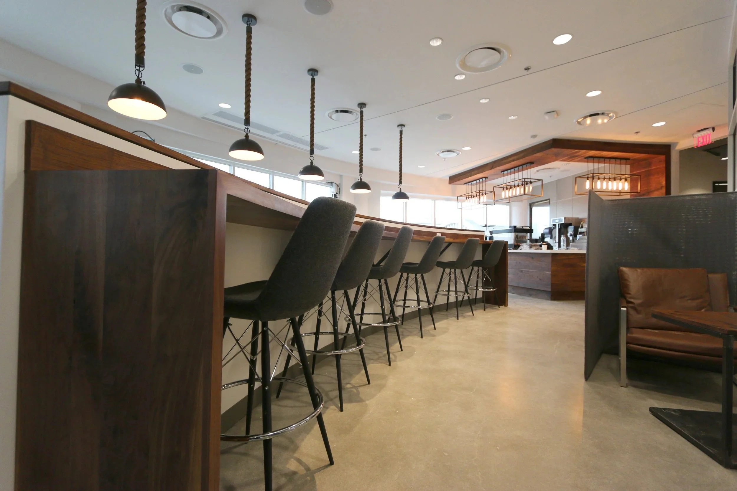 Renovation of a highly creative open class A office space, including collaborative work areas, garage style training rooms, cafe and several other conference and networking space. This project has high end finishes of walnut millwork, specialty light fixtures, garage doors, feature windows, bi-fold doors, large areas of write and wipe surfaces, large scale graphics, frosted windows and the latest IT project and networking systems.